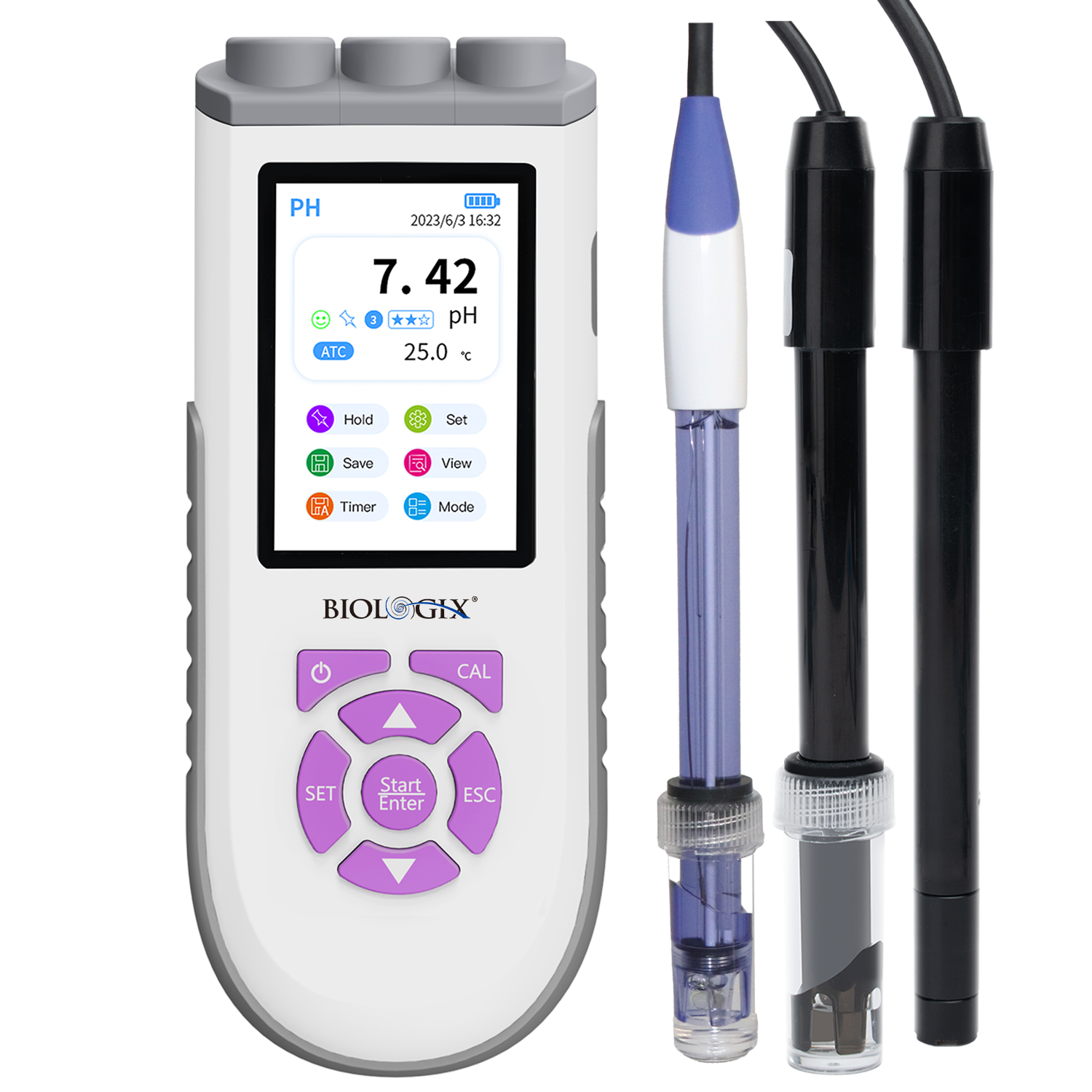 | 标准配件 | pH电极、pH标准液、 Type-C充电线、手册 | pH电极、pH标准液、 电导率电极、 电导率标准液、 Type-C充电线、手册 | pH电极、pH标准液、 电导率电极、 电导率标准液、 POM溶解氧电极、 溶解氧补充液、 溶解氧传感器替换帽、 Type-C充电线、手册 | |